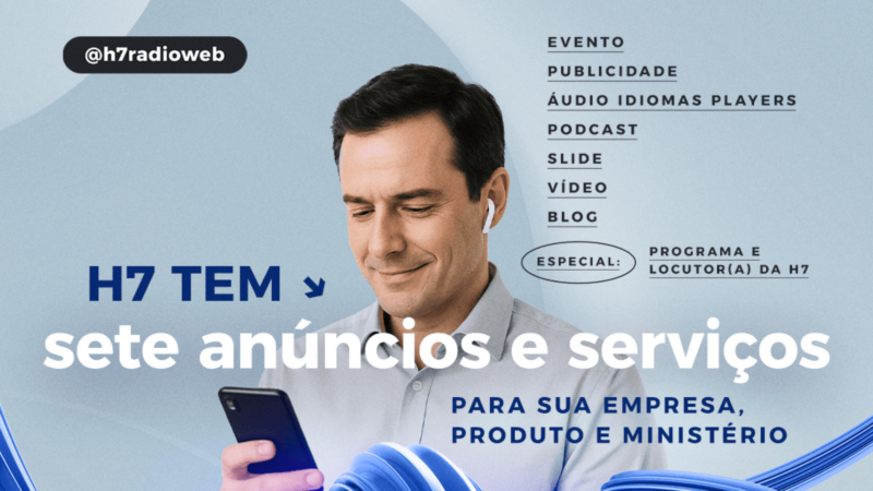 - Com uma arte exclusiva (1080 x 1080 px), sua marca, produto, ministério ou nome ganha destaque total na HOME PAGE da Rádio H7 Web, que já ultrapassou 301 MIL visualizações!