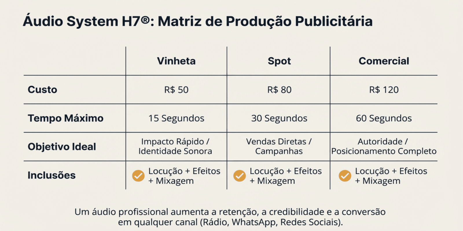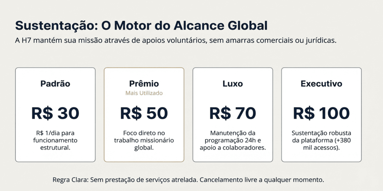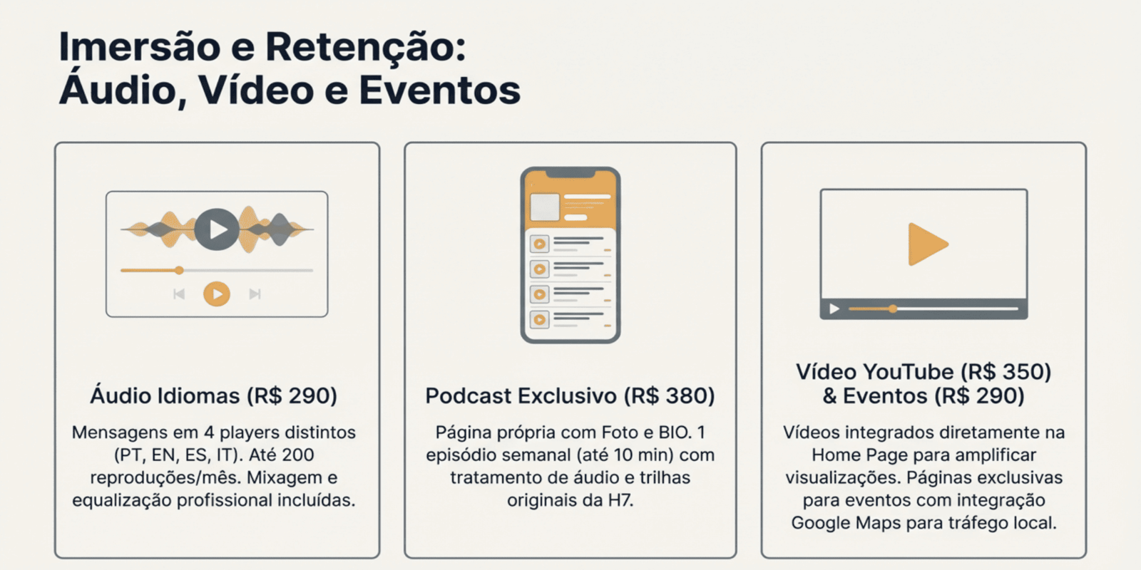 Atenção: Os preços dos serviços e condições apresentados podem ser ajustados a qualquer momento, sem aviso prévio, em conformidade com políticas comerciais, variações de mercado e normas institucionais vigentes da GUGCOM H7.