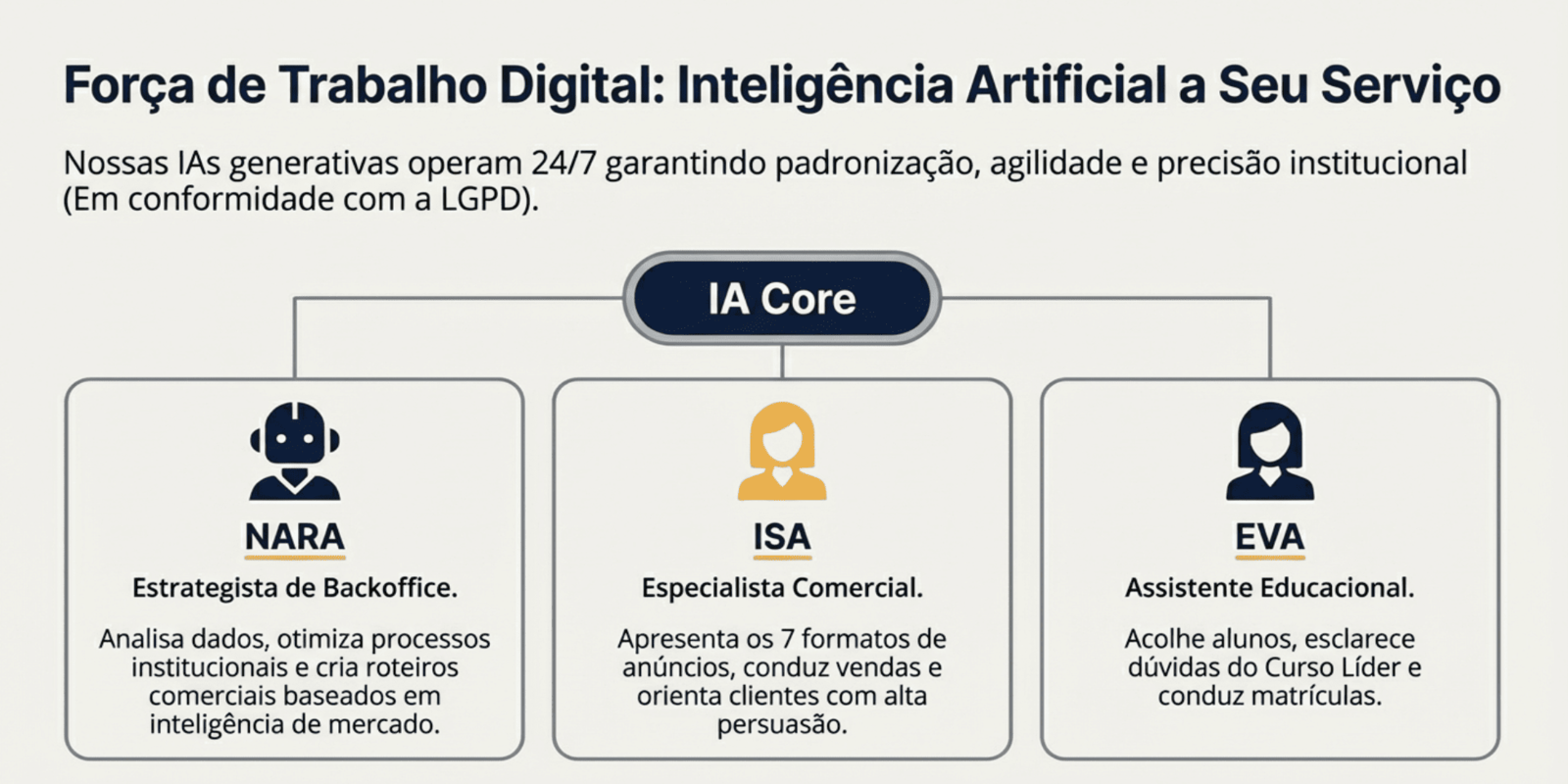 A GUGCOM, por meio de sua subsidiária H7, opera como uma plataforma global de comunicação e publicidade digital com ampla presença internacional. O ecossistema da empresa inclui cinco redes sociais oficiais, o uso de assistentes virtuais de inteligência artificial (EVA e ISA) e a oferta de serviços variados, como produção de áudio, podcasts e anúncios. Os materiais detalham normas rígidas de conduta, processos de pagamento seguros via Stripe e PayPal, além de programas de apoio voluntário sem contrapartida comercial. Adicionalmente, o grupo promove o Curso Líder, focado em formação cristã com certificação acadêmica, visando o desenvolvimento de lideranças maduras. Toda a operação é fundamentada na transparência informativa e na Lei Geral de Proteção de Dados (LGPD).