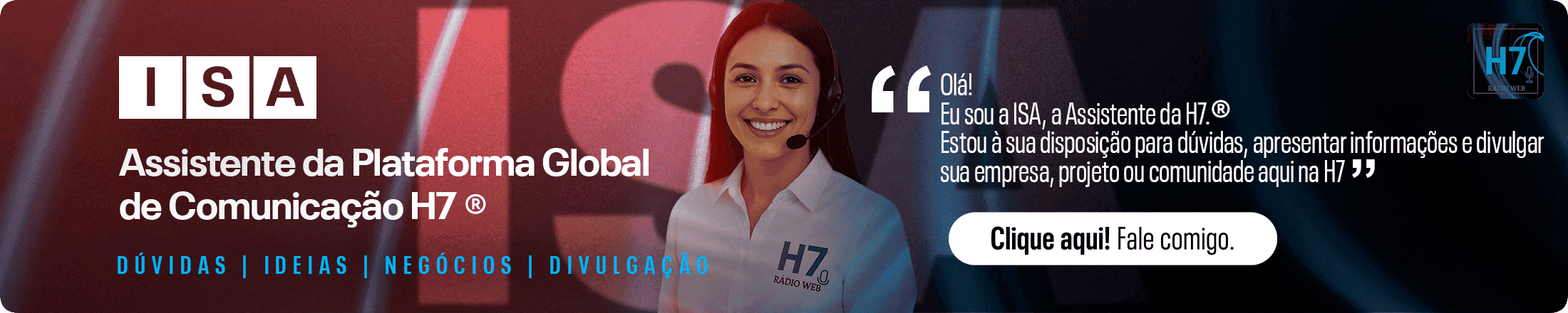 Olá! Eu sou a ISA, assistente digital da Plataforma Global de Comunicação e Publicidade Gugcom H7.